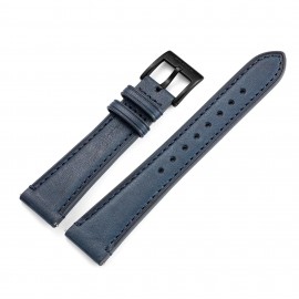 Two-Piece Blue Leather Strap & Black PVD Buckle